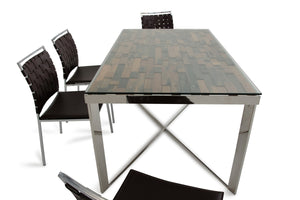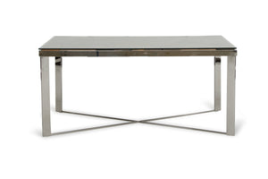 This modern dining table is a unique and interesting addition to your dining space. With the tempered glass top, messes are easily cleanable and gives a hint of sophistication to your dining room. The small table invites everyone to join in and have an intimate meal together. With the walnut finish, this dining table can easily be dressed up or down.