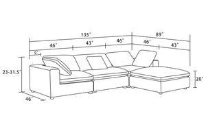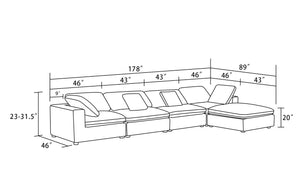 This oversized Modern Modular Sectional will take you there! Relax and enjoy the softness of this feather-down sectional that will yield to your body's contour. This modular sectional is so versatile that it lets you configure it to your specific preference and mood. By moving the individual pieces of this sectional around you can configure it to your desired occasion. And if you have guests staying over, the sectional can even transform into a cozy bed. Experience ultimate comfort and versatiltiy with our modular sectional - order yours today!