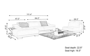 The Everlin Mini Modern Leather Sectional is a compact and stylish option for any living space. Handmade with genuine Italian or bonded leather in your preferred color from a selection of 10 distinct colors, this sectional features adjustable top headrests for customized support. A small console is included to hold remotes and TV snacks. This sectional also has an additional bed function for extra sleeping space. To complete the look of your home, we recommend adding the armless chair and coffee table with cup holders and USB ports.